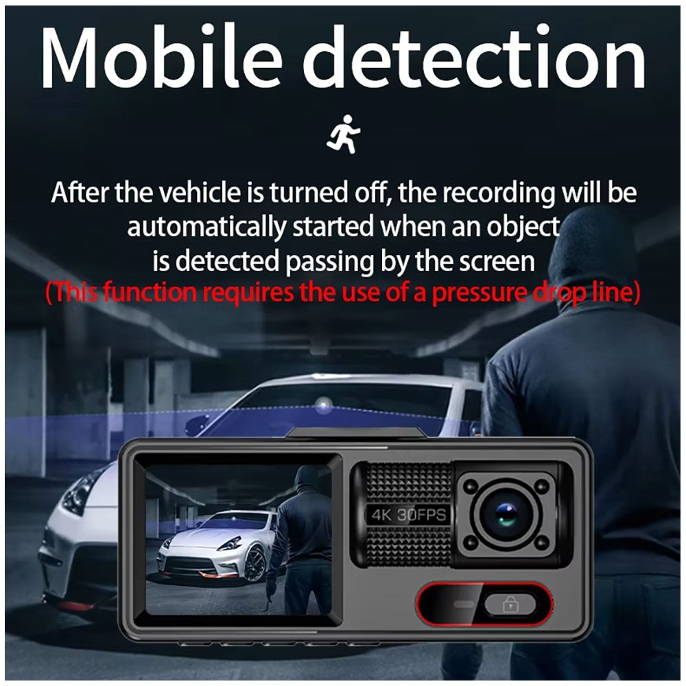 Mejora tu seguridad y control al conducir con esta cámara para coche HD 1080P de triple grabación, diseñada para registrar cada detalle del trayecto desde tres ángulos simultáneos. Integra conectividad WiFi para gestión desde aplicación móvil, sensor G para protección automática de archivos ante impactos, visión nocturna infrarroja para grabaciones claras en baja luz y monitoreo de estacionamiento para resguardar tu vehículo cuando no estás presente.